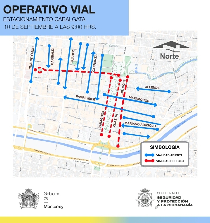 Durante la cabalgata y para que pueda ser utilizada como estacionamiento, se cerrará la calle Zaragoza, de Juan Ignacio Ramón a Ocampo, y Zuazua, de Padre Jardón a Juan Ignacio Ramón.