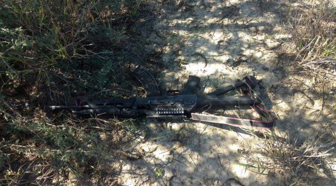En el lugar se aseguraron una camioneta Ford F150 King Ranch en color guinda, dos armas largas tipo AK-47 y equipo táctico.