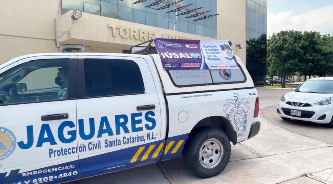 Ante la llamada tercera ola de covid19 y el alza de contagios de esta enfermedad mortal, el Gobierno de Santa Catarina a través de las áreas operativas de Salud, Jaguares de Protección Civil, Seguridad Pública y Vialidad, reforzó las medidas sanitarias a través de visitas a negocios, concentraciones masivas e iglesias masivas, perifoneos en las colonias y espacios públicos de la ciudad.