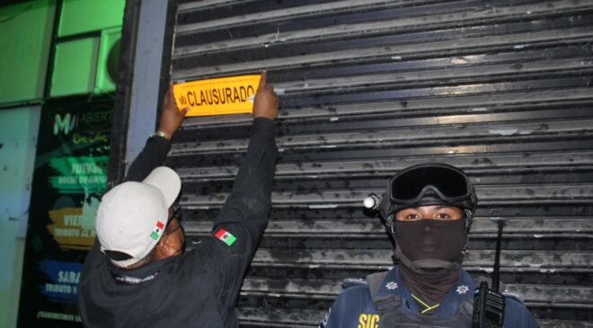 Durante los operativos, el personal municipal inspeccionó más de 30 establecimientos definidos como “antros”, cantinas o negocios con venta de cerveza, y clausuraron 8 de ellos por no tener su papelería en regla, falta de refrendo o tener a menores laborando en el lugar.