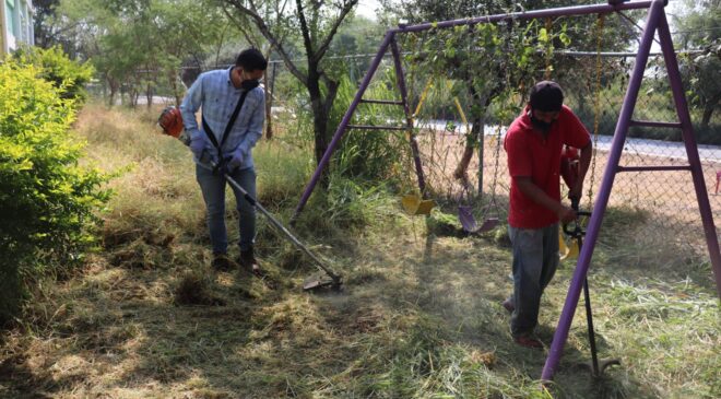“Estamos atendiendo el llamado de los vecinos y de este plantel, se encontraba con mucha hierba, en malas condiciones, acudieron a varias instancias y pues estamos haciendo equipo con directivos, personal y padres de familia.