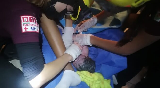 El parto estuvo a punto de atenderse en plena vía pública, pero por seguridad de la joven madre de familia, se optó por llevar a cabo las maniobras en el interior del domicilio.