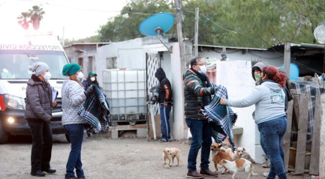Respetando todas las medidas sanitarias, Protección Civil Municipal y el área de Concertación Social repartieron las mantas, chocolate caliente y pan en las colonias La Isla y Paso Cucharas.