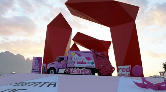 La Presidenta del DIF Municipal de Santa Catarina, Paola García de Nava, arrancó la campaña rosa en sinergia con la empresa Red Ambiental, mediante la cual camiones recolectores de basura que pasan por las colonias portarán el mensaje “Campana de la Vida” para prevenir el cáncer de mama, exhortar a las mujeres a la autoexploración y salvar vidas.