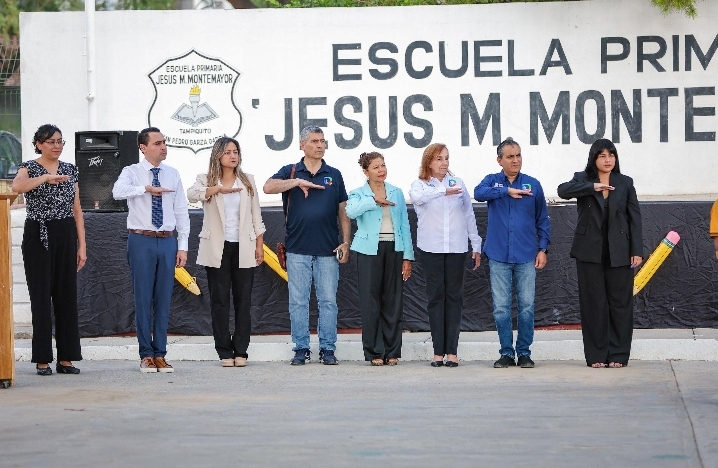 Al finalizar la supervisión de los programas de movilidad, las autoridades municipales se trasladaron a la escuela primaria Jesús M. Montemayor, en la colonia Tampiquito, donde encabezaron la ceremonia de arranque oficial del ciclo escolar con los honores a la Bandera.