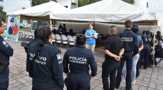 A través de la Dirección de Prevención de la Violencia, con el apoyo de la Dirección de Salud Pública, de la Secretaría de Desarrollo Humano e Igualdad Sustantiva, por primera vez se realizará en la ciudad este tipo de acciones, lo que también convierte a Monterrey en uno de los pineros en la zona metropolitana, en atender exclusivamente la salud de los oficiales.