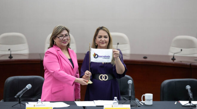 Beatriz Camacho recibió la estafeta insignia del Observatorio de parte de Laura Paula López Sánchez, Presidenta del Instituto Estatal de las Mujeres, a quien destacó por su gestión a favor de las mujeres durante su encargo como titular de éste.