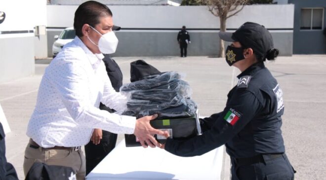 Buscando una mayor profesionalización en el tema de seguridad a la población, autoridades de Juárez realizaron un recorrido de supervisión por diversas áreas de la Secretaría de Seguridad Pública Municipal, donde además se entregaron nuevos uniformes a más de 400 elementos policiacos.