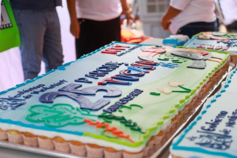 La secretaria de Servicios Públicos, Mayela Quiroga, en compañía del Secretario de Participación Ciudadana, Rafael Ramos, dio la bienvenida a las familias y repartieron el pastel a cada uno de los asistentes.