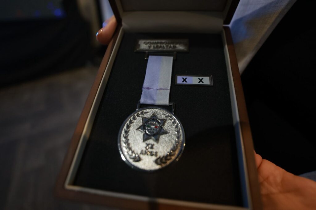 Durante el evento, De la Garza reconoció la perseverancia, disciplina y compromiso de la corporación, anunciando la entrega del bono de antigüedad a cerca de 800 elementos de policía y tránsito de la Secretaría de Seguridad Pública y Protección Ciudadana.