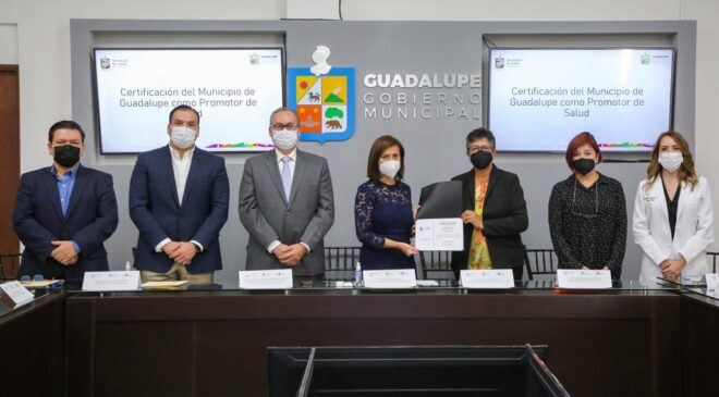 Por sus acciones saludables a favor de las familias de Guadalupe, la Alcaldesa Cristina Díaz recibió la certificación que acredita a la administración como Municipio Promotor de la Salud.
