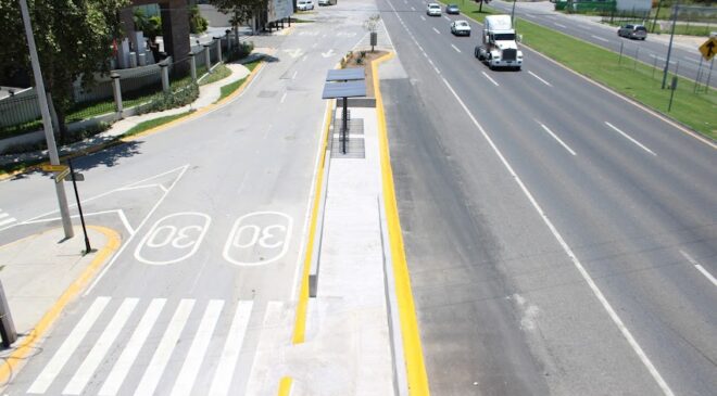 A través de la Secretaría de Infraestructura Sostenible, el Gobierno de Monterrey invirtió 11 millones de pesos en el puente, tres parabuses, bahías de ascenso y descenso para usuarios del transporte urbano, jardineras y señalamientos.