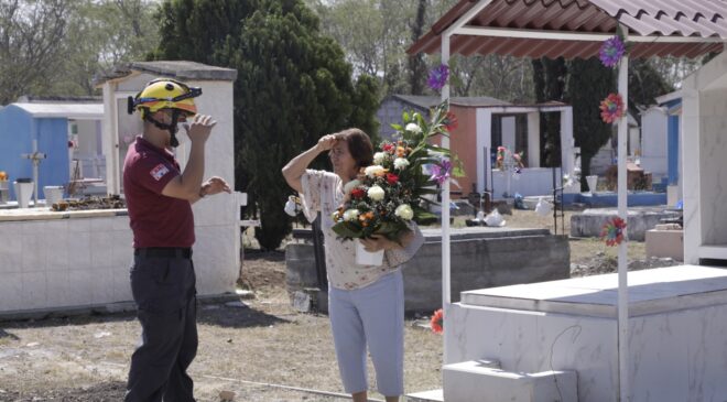 De igual manera, los brigadistas de Protección Civil realizaron recorridos para evaluar las condiciones en que se encuentran las tumbas y en las que consideraba había riesgo, les colocaron señalamientos preventivos.