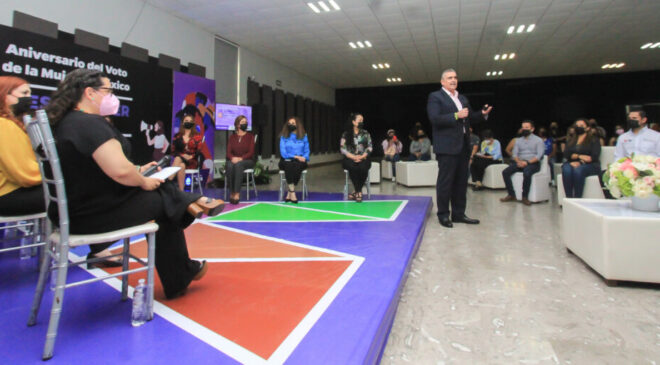“Que hablen las mujeres, que hablen fuerte, por aquellas que están en silencio, por aquellas que no tienen voz. Este fin de semana se conmemora el 68 aniversario del Voto de la Mujer Mexicana”, señaló Garza Villarreal.