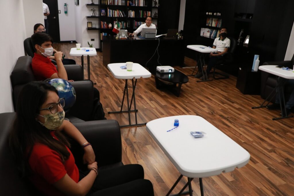 En la plática virtual en la que también estuvieron presentes padres de familia de los estudiantes, el Presidente Municipal recomendó a los jóvenes involucrarse en los temas que exige las nuevas realidades y replicar los buenos hábitos sanitarios.