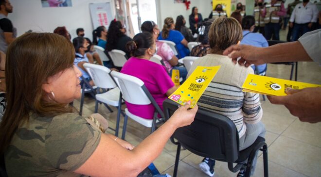La Presidenta Municipal mencionó que “Vecinos Vigilantes” busca tener comunidades y entornos saludables, ya que eso ayuda a que los factores de riesgo de una población disminuyan; esto con el fin de restablecer el tejido social y reconstruir la paz.