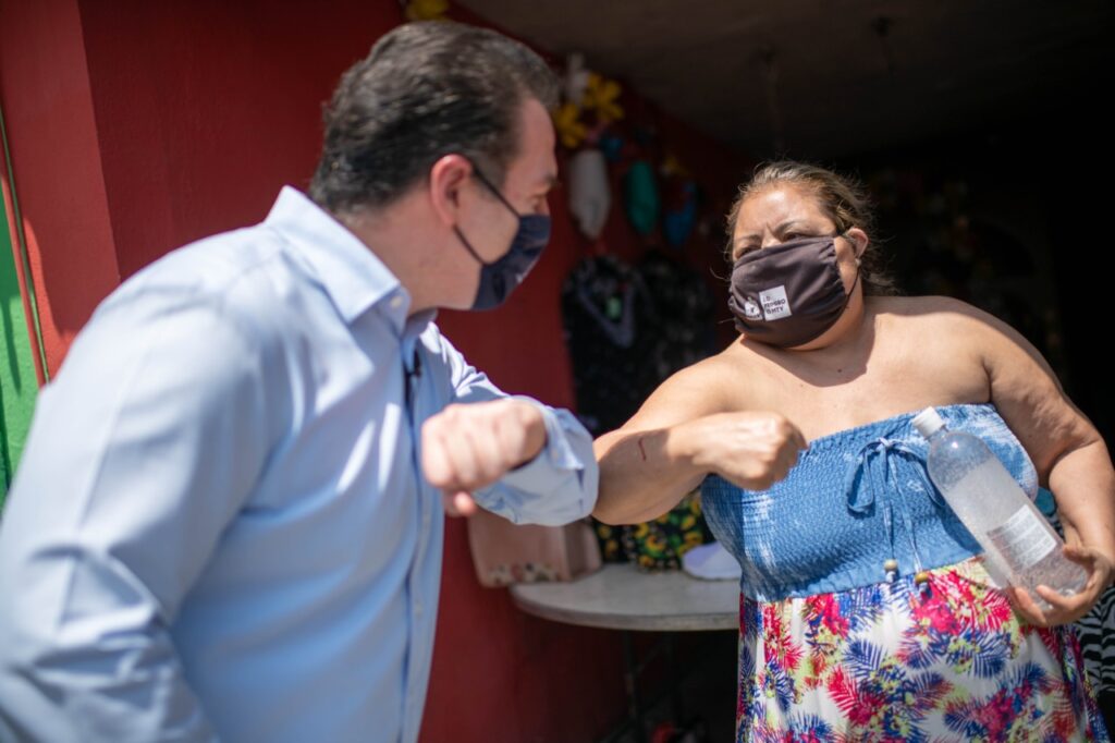 “Seguimos con el tema de contingencia, aunque ya hemos reactivado la actividad económica, con cupo limitado con venta al menudeo, tenemos que seguir con las restricciones, tenemos que seguir usando tapabocas, lavarnos las manos constantemente, usar gel antibacterial, por eso estamos entregando estos apoyos, guardar la sana distancia, en la medida de lo posible”, dijo.
