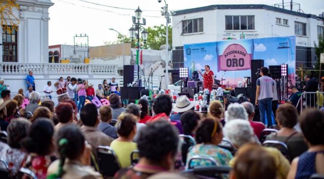 Al celebrar el Día del Adulto Mayor con la coronación del Rey y la Reina en Guadalupe, la Alcaldesa Cristina Díaz y el Presidente del DIF, Tomás Montoya, reconocieron el talento de los abuelos que participaron en un concurso de canto en la Plaza Principal.