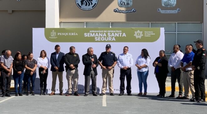El arranque de este operativo se llevó a cabo en las instalaciones del C4 de Seguridad Pública de Pesquería, con la presencia de autoridades municipales, en donde también participarán oficiales de Tránsito, elementos de Protección Civil municipal “Linces”, así como de la policía estatal, la Sedena y la Agencia Estatal de Investigaciones.
