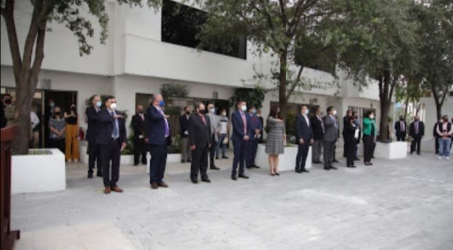 Previo al acontecimiento, en la plaza del organismo se realizó una ceremonia de honores a la bandera nacional.