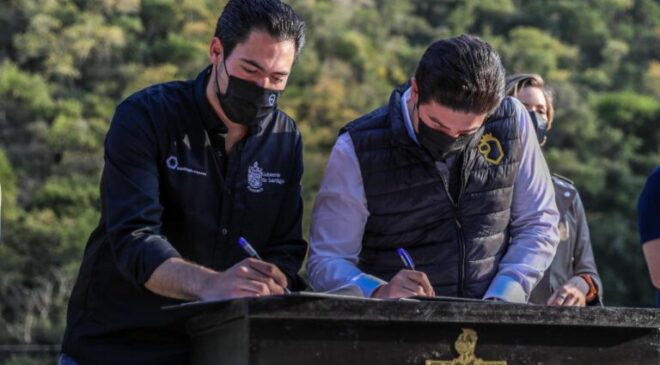 “Desde aquí, desde Santiago, Nuevo León, lanzar un exhorto de que Nuevo León siga unido, de que Nuevo León siga luchando, de que diputados federales, locales, alcaldes y todo Nuevo León nos sumemos a cuidar nuestra agua, cuidar nuestro aire, cuidar nuestras sierras, cuidar nuestro medio ambiente y por supuesto generar riqueza, somos el motor de todo México, tenemos que seguirlo siendo pero nunca a costa del medio ambiente”, indicó.