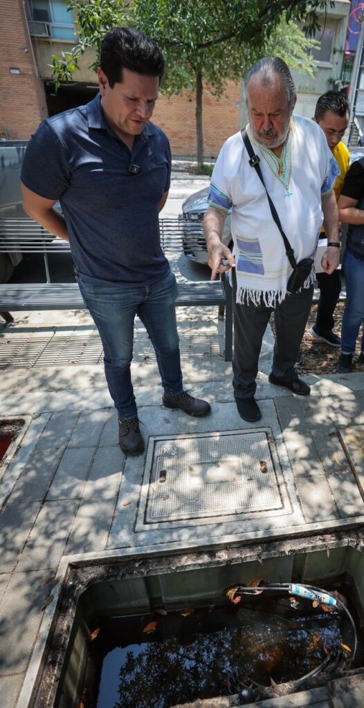 Fernández Garza observó diversos registros inundados por la falta de desagüe, así como daños en instalaciones eléctricas, que han provocado afectaciones a los servicios de telecomunicaciones y electricidad de habitantes y comerciantes del Centrito.