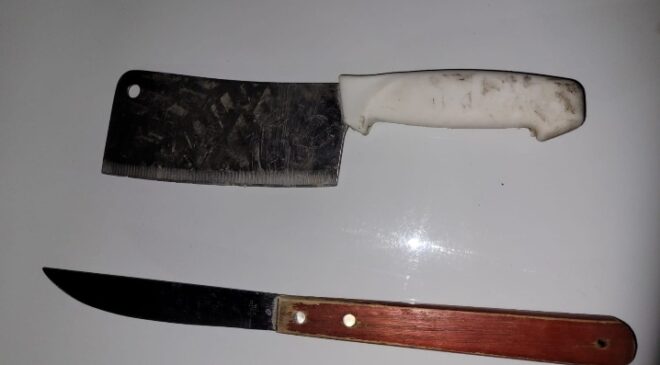 Al ver a los policías, el presunto se abalanzó contra ellos para agredirlos, ya que portaba entre sus manos un hacha y un cuchillo.