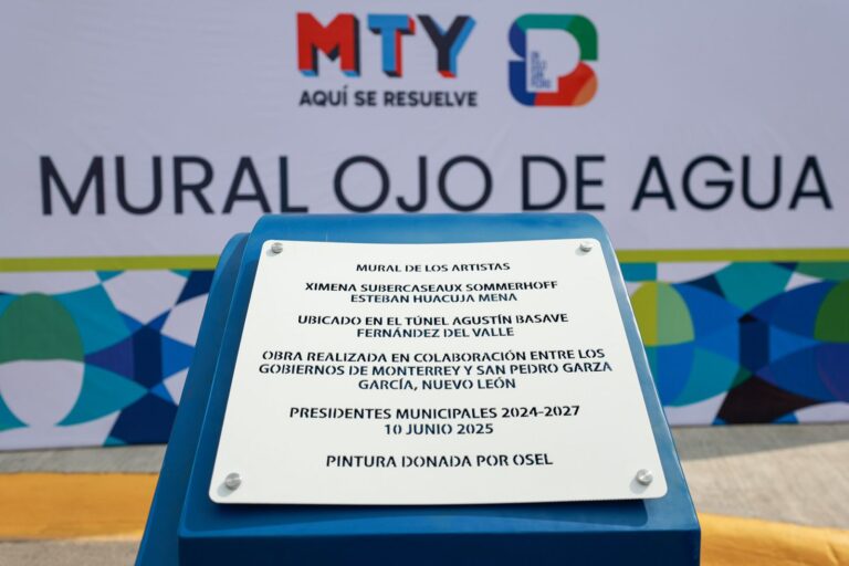 El municipio de San Pedro Garza García, en colaboración con Monterrey, develó la placa conmemorativa del mural “Ojo de Agua”, creado por los artistas Ximena Subercaseaux Sommerhoff y Esteban Huacuja Mena, en el túnel de la Loma Larga “Agustín Basave Fernández del Valle”.