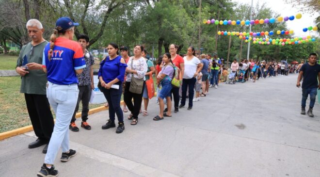 Con el propósito de apoyar el desarrollo académico de las infancias y los adolescentes de Monterrey, el alcalde Adrián de la Garza repartió este martes paquetes del programa “Útiles, Útiles 2025” en el Parque Aztlán.