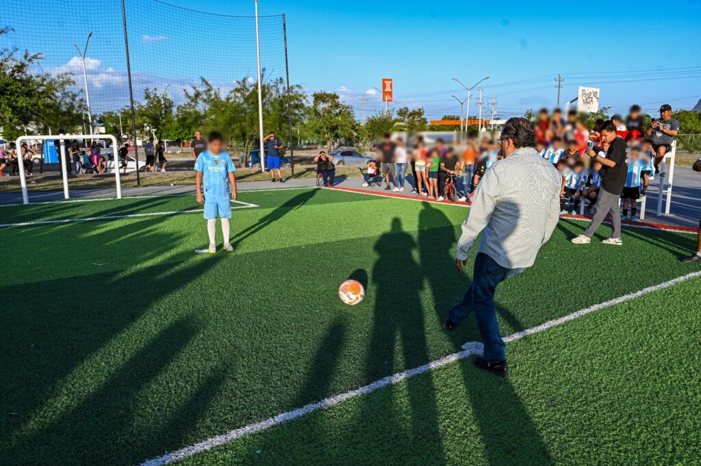 Mijes dio la patada inaugural del nuevo espacio deportivo de la Colonia Privadas de Camino Real, cancha que podrán disfrutar todos los niños y jóvenes de este sector y colonias aledañas.