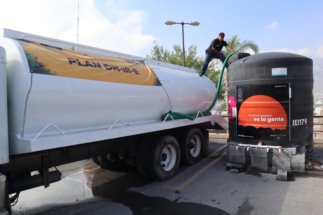 El Gobierno de Santa Catarina continúa con la dotación de agua a través de pipas que surten del vital líquido en diversos sectores de la ciudad, así como a través de los 75 tanques cisternas instalados en diversos puntos.