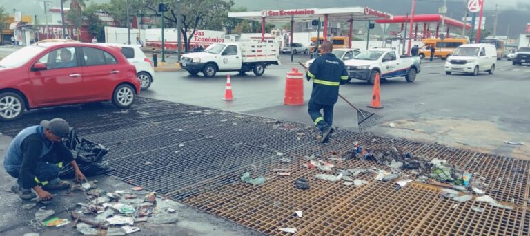 En colonias como Valle del Canadá y Hacienda los Cantú, brigadas municipales se concentraron en retirar basura acumulada para facilitar el desfogue de las corrientes y disminuir riesgos de encharcamientos prolongados.