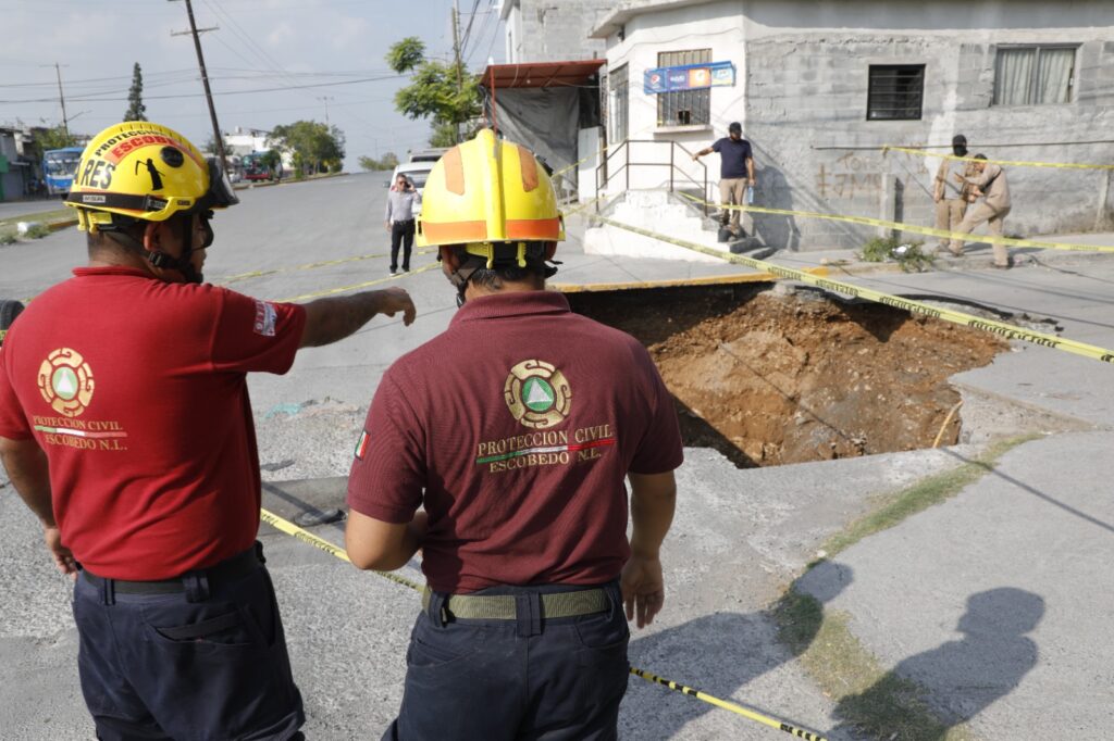 Martiniano Rueda, secretario de Obras Públicas de Escobedo señaló que, derivado de un reporte ciudadano, brigadistas de Protección Civil acudieron de inmediato al sitio, donde observaron el hundimiento formado con cinco metros de profundidad y un diámetro de ocho metros.