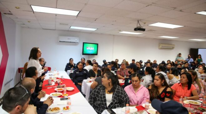 Ante un grupo representativo de oficiales, Díaz reconoció a las 288 mamás policías, agentes de tránsito, cadetes y personal administrativo que se desempeñan en la Secretaría de Seguridad Pública y Protección Ciudadana.