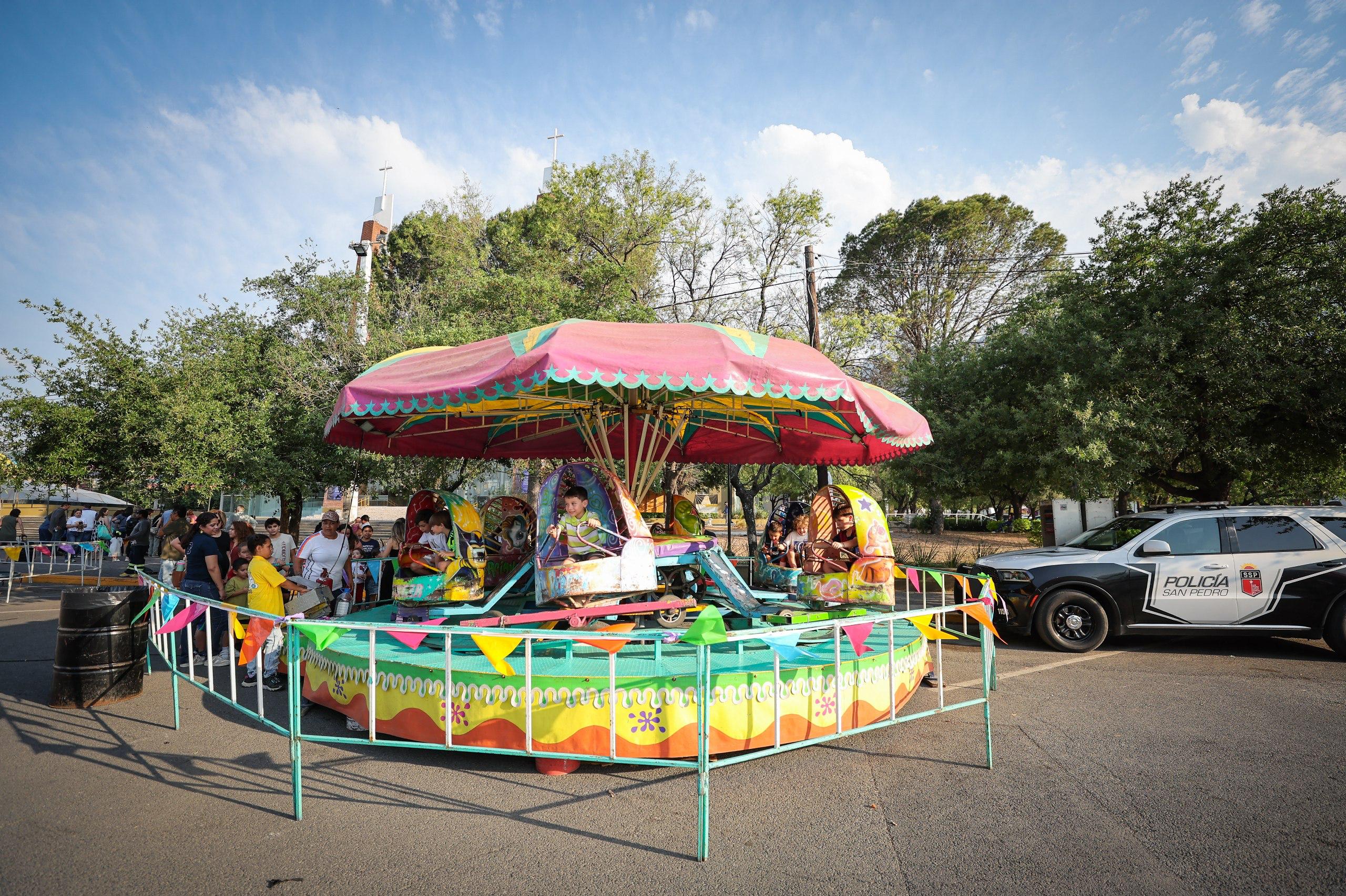 Desde las 17:00 horas, los más pequeños disfrutaron de juegos mecánicos, inflables y pintacaritas en Plaza Fátima. El Secretario General, Luis Susarrey Flores, aseguró que con estos eventos se refuerza el compromiso de San Pedro por trabajar en pro de las infancias.