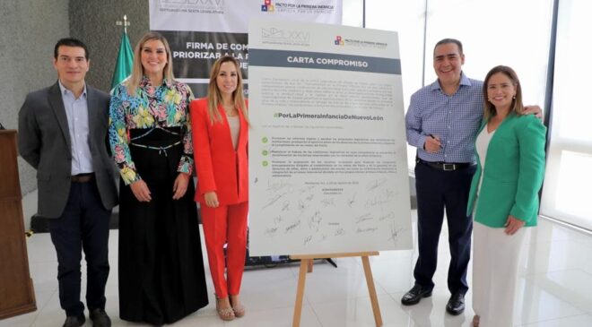 La Carta Compromiso por la Primera Infancia fue singada por Ivonne Álvarez García, Presidenta del Congreso local; Jonathan Serrato; representante del Pacto por la Primera Infancia en Nuevo León; Heriberto Treviño, Coordinador del GLPRI; Carlos de la Fuente; Líder de la bancada del PAN; y Eduardo Gaona, Coordinador de la fracción de MC.