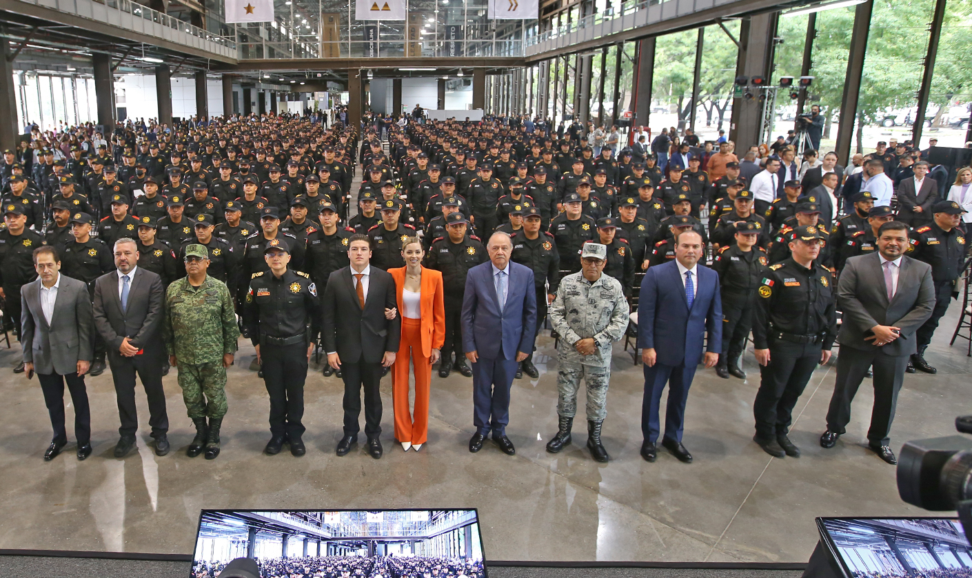 “Lo hacemos con toda la convicción de que este es un piso y que viene mucho más inversión; y no solamente en equipo, sino en la gente, en el personal y en todos los policías hombres y mujeres que cuidan a las familias de Nuevo León”.