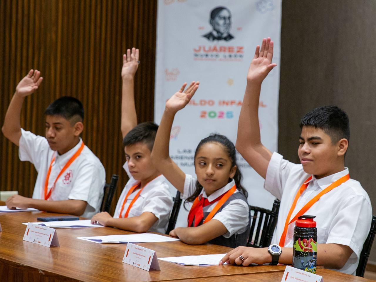 Desde la Sala de Cabildo, 21 niños provenientes de distintas escuelas primarias y secundarias del municipio que conforman la Comisión de Participación de Niñas, Niños y Adolescentes, difusores del Municipio de Juárez, Nuevo León, abordaron temas de suma importancia y relevancia para los habitantes de Juárez, como la prevención del bullying en escuelas, el cuidado del medio ambiente y la protección de los animales.