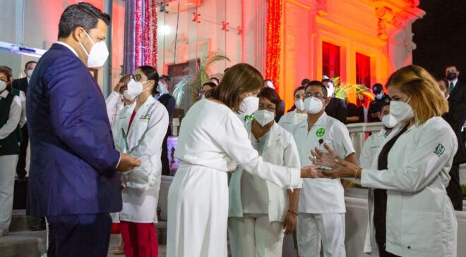 En la ceremonia, la Edil reconoció la destacada labor de médicos y enfermeras para brindar atención a las familias que han requerido ayuda durante los más de 18 meses de emergencia sanitaria.
