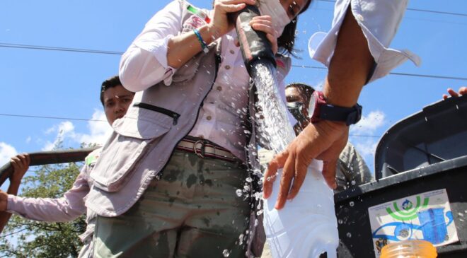 La Alcaldesa exhortó a la ciudadanía de Guadalupe que no tomen agua de los pozos y de llaves de aguas residuales, para el consumo humano, preparar alimentos o lavar sus trastes, ya que no es potable y solamente puede ser utilizada para el baño o realizar el aseo en los hogares.