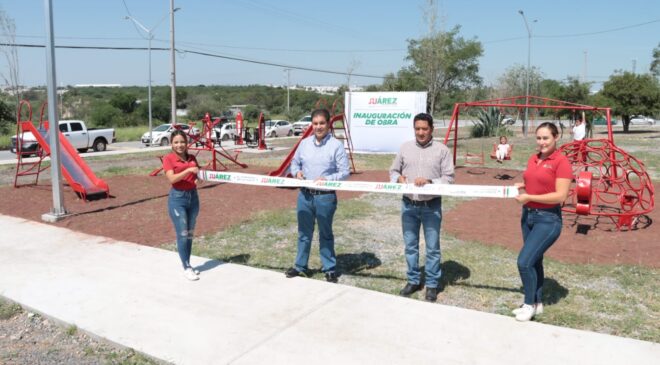 Y como parte de este programa para beneficiar a las familias juarenses, Paco Treviño encabezó el corte de listón a la restauración de una de las plazas en Residencial Zirándaro, donde se realizaron trabajos por parte de la Secretaría de Obras Públicas y se equipó con juegos infantiles y aparatos para realizar ejercicio.