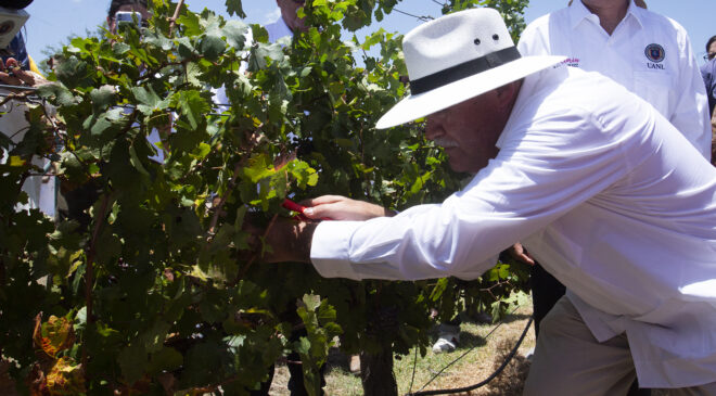 Por su parte, el mandatario estatal felicitó a la Universidad por impulsar la cosecha de la vid en Nuevo León.