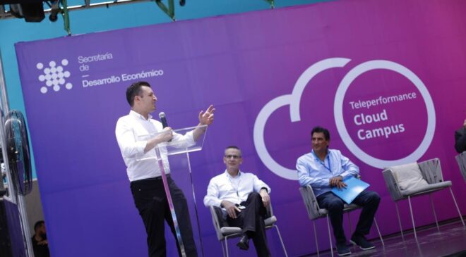 En compañía de Betsabé Rocha Nieto, Secretaria municipal de Desarrollo Económico; y de Juan Ignacio Sada, Director General de la empresa, el Edil cortó el listón inauguraL del llamado “Cloud Campus” desde el cual, distribuirán conectividad y logística a los 27 mil empleados, especialmente a los que laboran bajo el esquema “home office”.