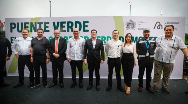 Bajo un torrencial e inesperado aguacero, el Gobierno de Monterrey inauguró el Puente Verde, el primer corredor de la ciudad y “el corazón” del Sistema de Corredores Verdes.