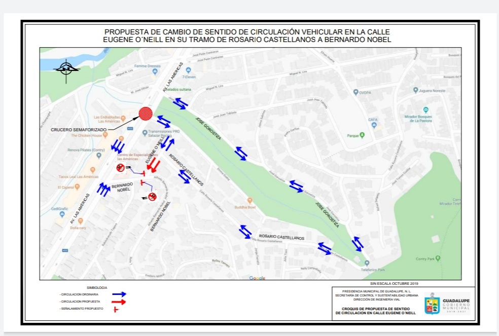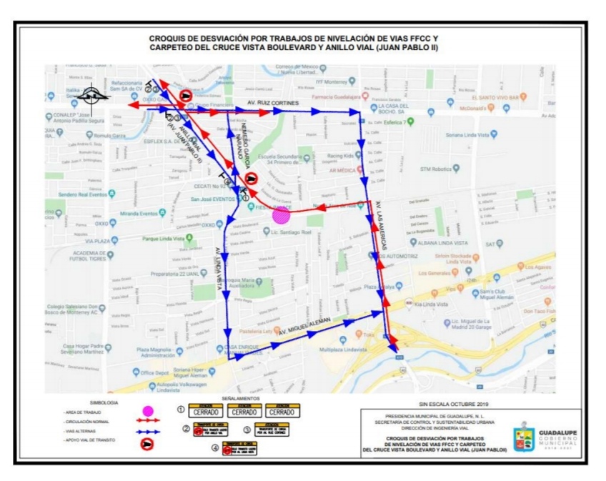 El Municipio de Guadalupe informa sobre labores de recarpeteo en el Anillo Vial Metropolitano, a la altura de avenida Linda Vista; y un cambio de sentido de circulación en la calle Eugene O’Neill, de Rosario Castellanos a Bernardo Nobel, en Contry Sol.