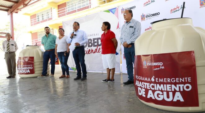 “Empezamos con esta escuela, es la primera de aproximadamente 20, conocemos la situación en la que se encuentran los planteles y, en busca de contribuir al mejoramiento del entorno en el que los estudiantes toman sus clases, hacemos esta entrega de tinacos.