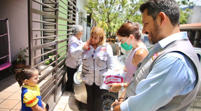 Al realizar un recorrido casa por casa, el Presidente de DIF Guadalupe, Tomás Montoya inició con el reparto de paquetes con útiles escolares a niñas y niños del sector Exposición.
