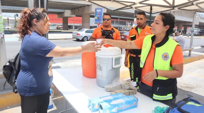 Los puestos de hidratación son operados por funcionarios del DIF Municipal y personal del Grupo Jaguares de Protección Civil, en los que se entrega el agua en conos desechables a todo transeúnte que lo requiera.