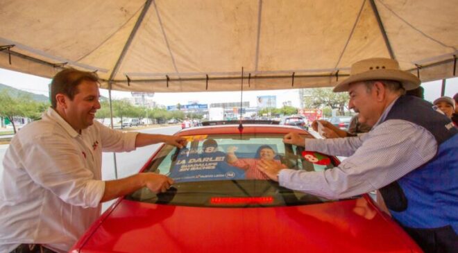 En un ambiente de fiesta y campaña política, junto a su familia y los candidatos a diputaciones locales y federales, Pedro Garza Treviño, María de Jesús Aguirre, Itzel Castillo, Pepe Torres y Félix Rocha, Garza Ochoa pegó calcas y entregó a más de dos mil automovilistas publicidad que fue bien recibida y que está relacionada con sus cinco ejes de campaña: Un Guadalupe sin Baches, Un Guadalupe Seguro y en Paz, Guadalupe la Ciudad de la Salud, Guadalupe Sustentable, e Infraestructura para Todas y Todos.