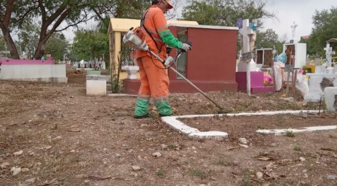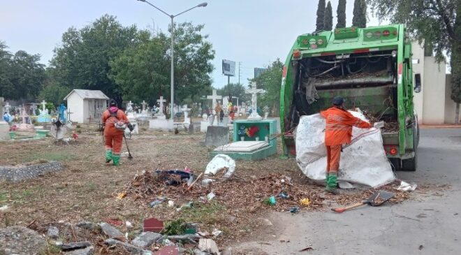 El Secretario de Servicios Públicos municipal, José Santos Valdés Salinas, explicó que se realizó un operativo integral de limpieza en los panteones San Jorge, Valle Verde, Topo Chico y Estanzuela.